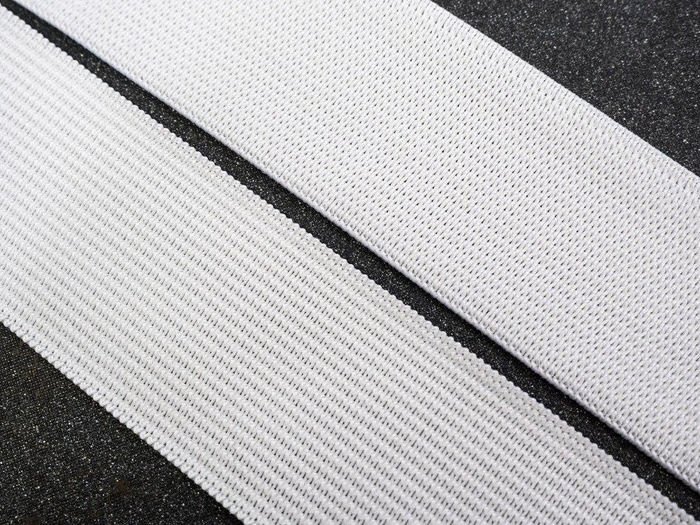 Glattes Gummiband zum Durchnähen ist aus weichem und angenehmem Material hergestellt. Es ist elastisch und bekommt nach dem Ausdehnen wieder seine Form.
