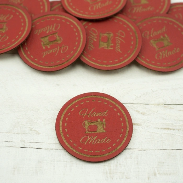 Applikation aus Öko-Leder mit dem Aufschrift "Hand Made"