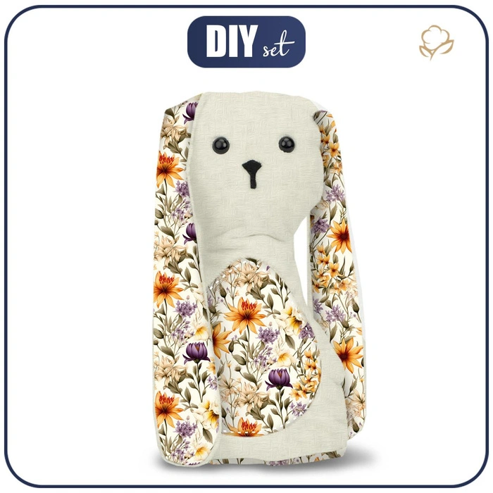Im Set finden Sie alle notwendigen Produkte zum Nähen eines Häschen-Maskottchens. Alle Teile sind in einer Pappschachtel verpackt.