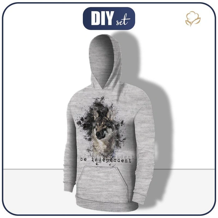 HERREN HOODIE - BE INDEPENDENT (BE YOURSELF) / melange hellgrau - Nähset XXL