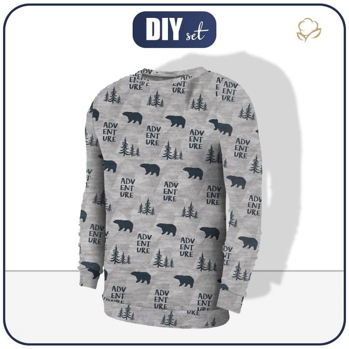 HERREN SWEATSHIRT - BÄREN (ADVENTURE) / melange hellgrau - Elastischer Wintersweat L