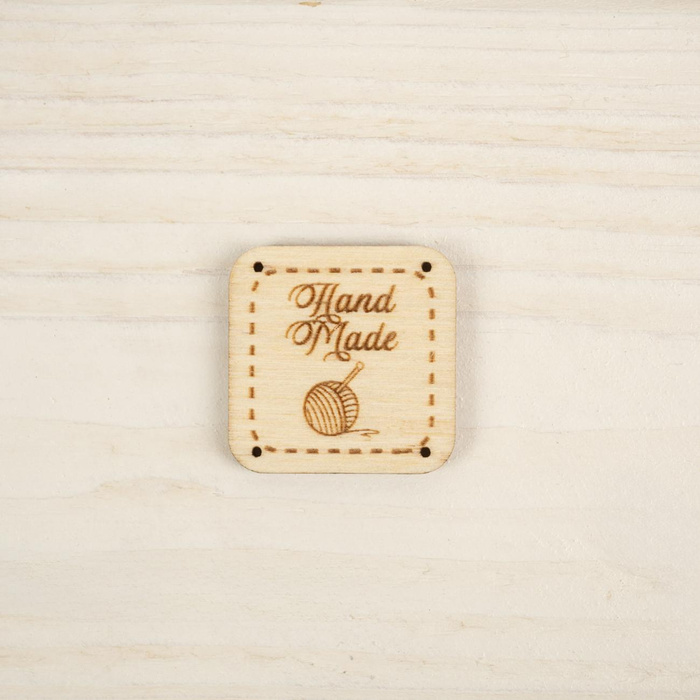 Holzanhänger mit einseitiger Aufschrift „HAND MADE“. Ausgestattet mit kleinen Löchern, perfekt zum Nähen. Wir empfehlen, sie nicht zu waschen.