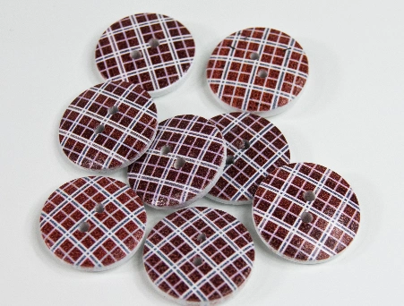 Holzknöpfe , gestreift. Zweilöchig. Einzug 2mm. Untere Seite ist weiß. Geeinget für Kindermode.