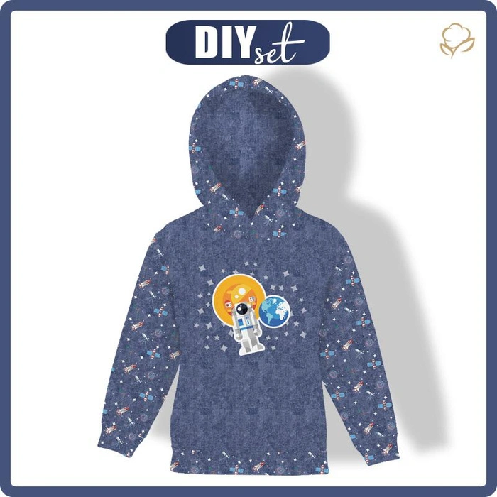 KINDER HOODIE (ALEX) - ASTRONAUT (WELTRAUMEXPEDITION) / ACID WASH DUNKELBLAU - Sommersweat (134/140)