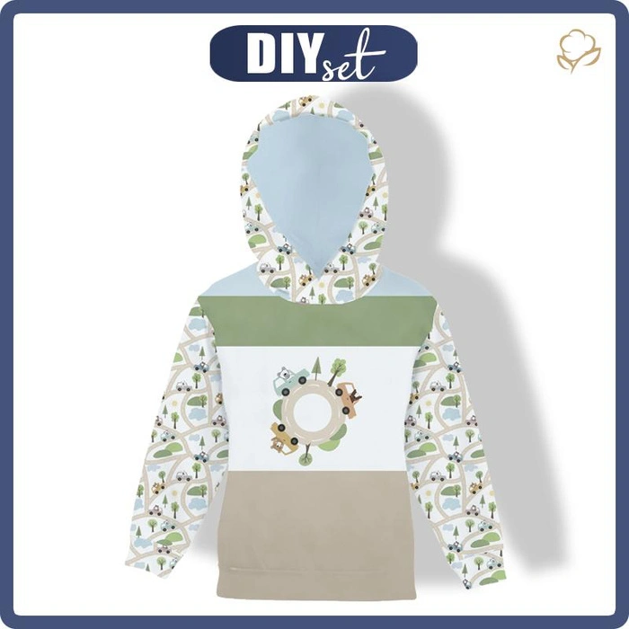 KINDER HOODIE (ALEX) - BUNTE AUTOS / Kreisel (STADTBÄREN) - Sommersweat (86/92)