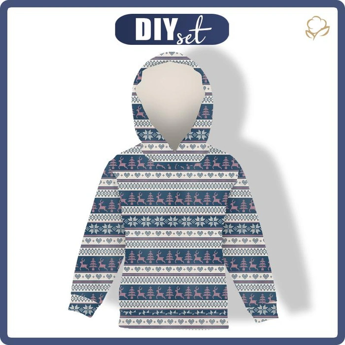 KINDER HOODIE (ALEX) - RENTIERE M.3 / dunkelblau (NORWEGISCHE MUSTER) - Sommersweat (134/140)