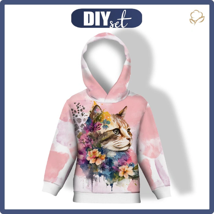 KINDER HOODIE (ALEX) - WATERCOLOR CAT MS. 1 - Sommersweat (98/104)