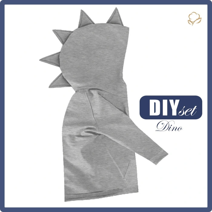 KINDER HOODIE DINO "PARIS" (74/80) - MELANGE HELLGRAU - Nähset