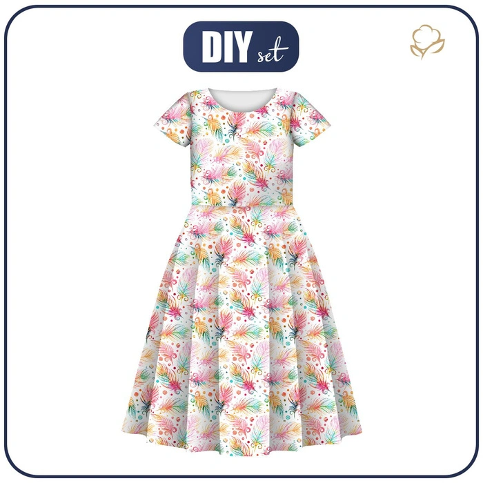 KINDER KLEID "MIA" - REGENBOGEN FEDERN - Nähset (98/104)