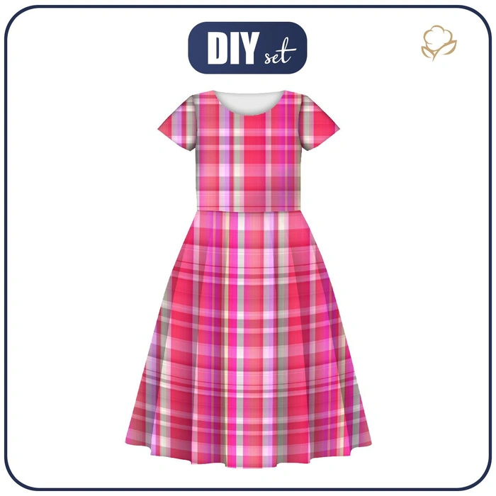 KINDER KLEID "MIA" - ROSA KARO MS. 3 - Nähset (134/140)