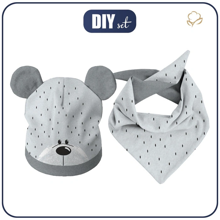 KINDER MÜTZE UND SCHAL (TEDDY) - BÄR / grau - Nähset