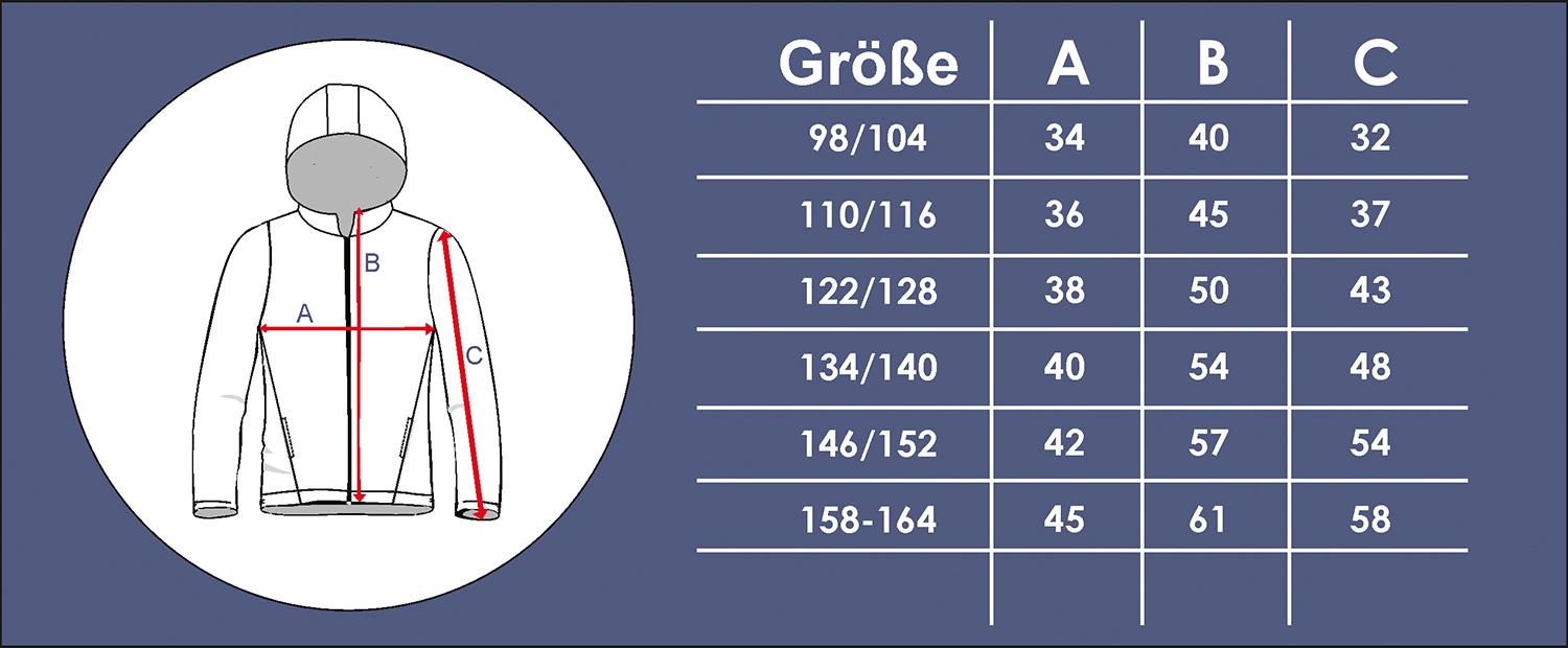 Die Größen richten sich nach der Größentabelle, die wir unten zur Verfügung gestellt haben.
