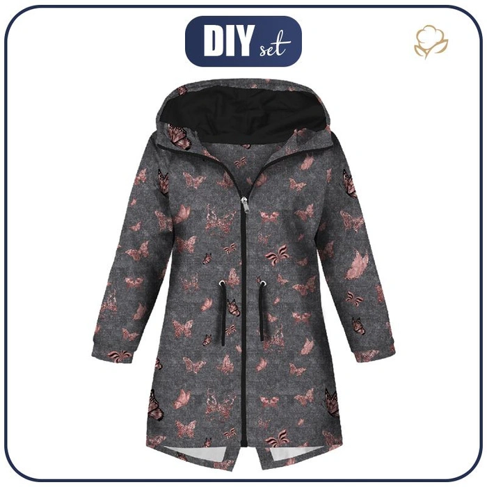 KINDERPARKA (ARIEL) - SCHMETTERLINGE (GLITTER SCHMETTERLINGE) / ACID WASH GRAU - Softshell (146/152)