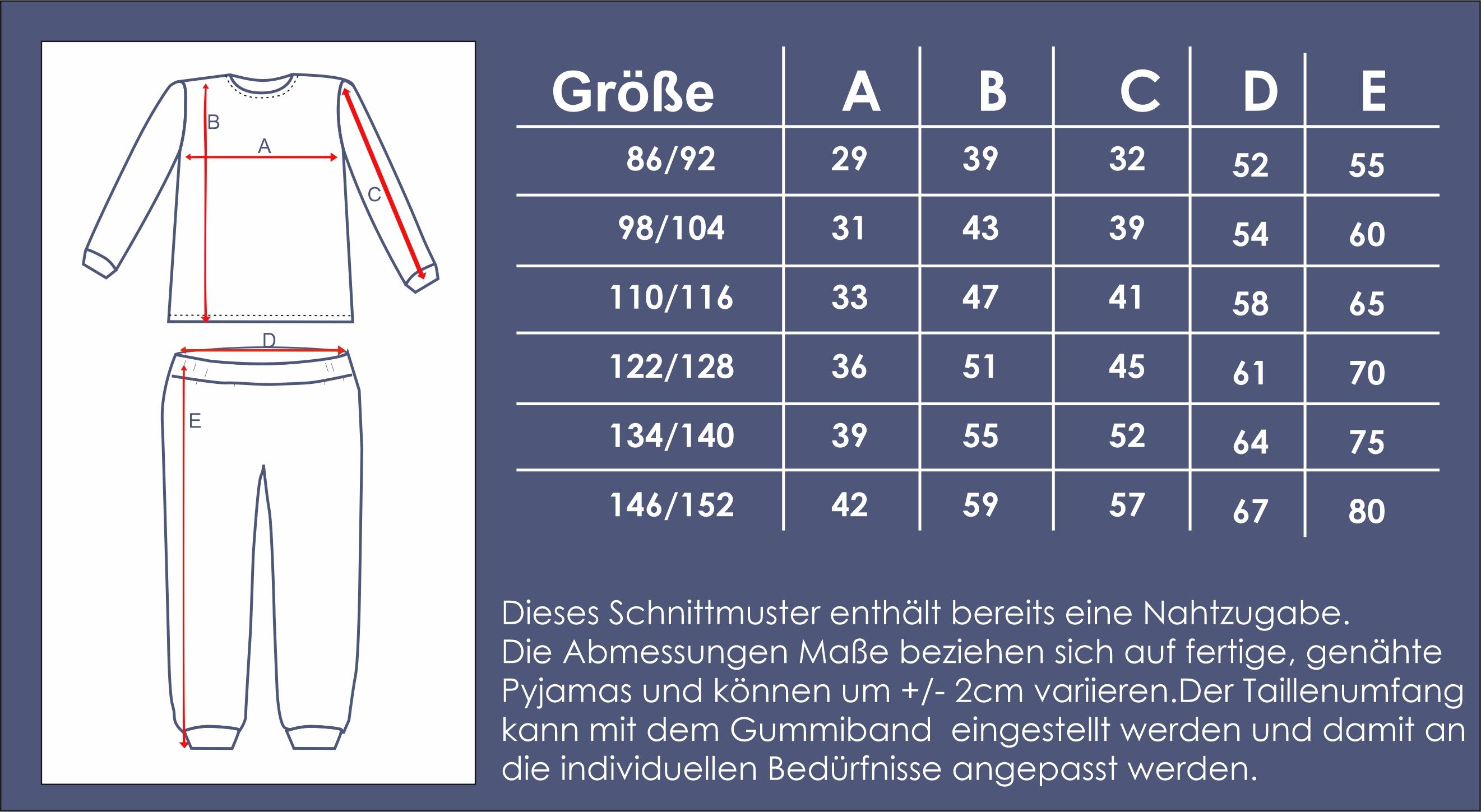 Das Set enthält Materialien zum Nähen von Kinderpyjamas.