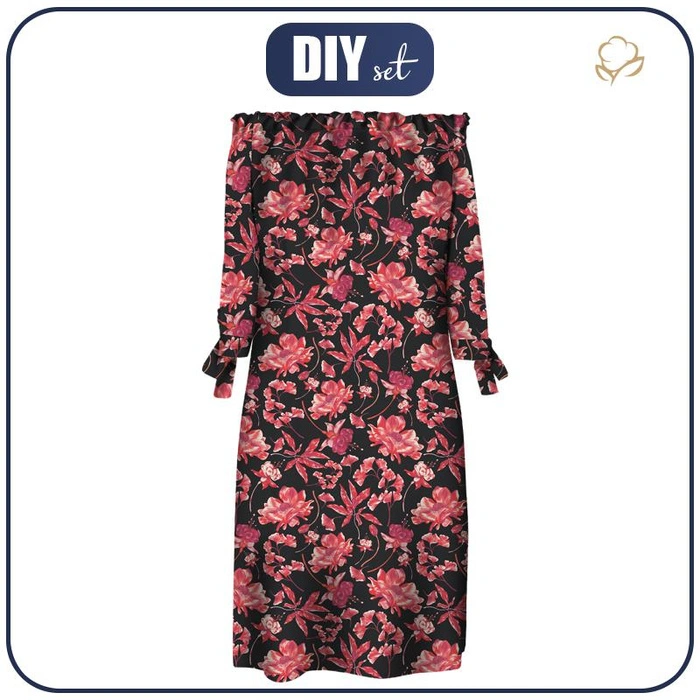 KLEID "CARMEN" - ROTE BLUMEN Ms. 3 - Krepp M