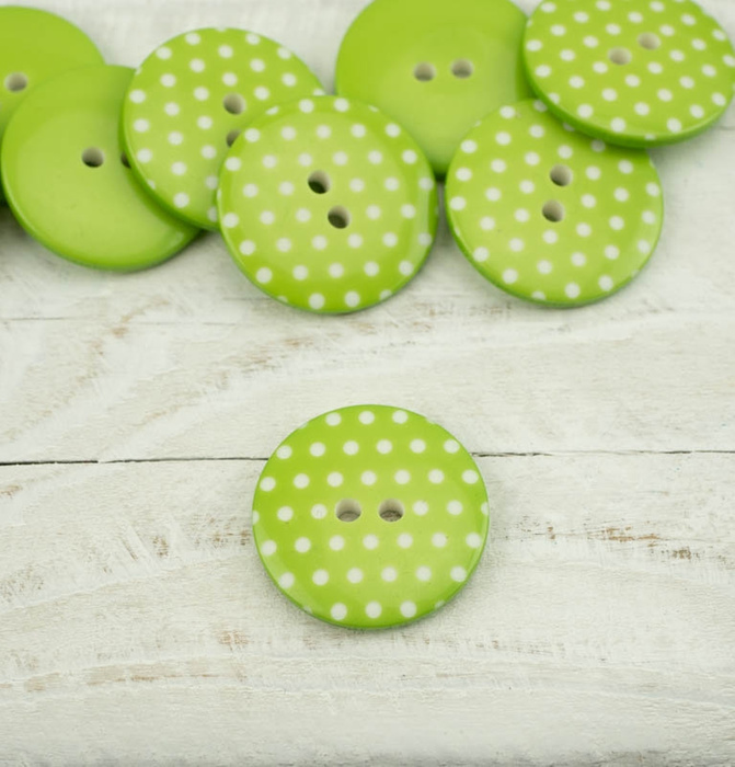 Dekorativer Knopf mit Punkten und zwei Befestigungslöchern.