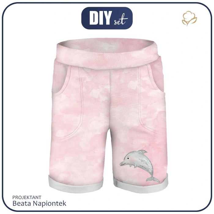 KURZE KINDERHOSE RIO" (122/128) - DELFIN / CAMOUFLAGE m. 2 / blass rosa - Nähset