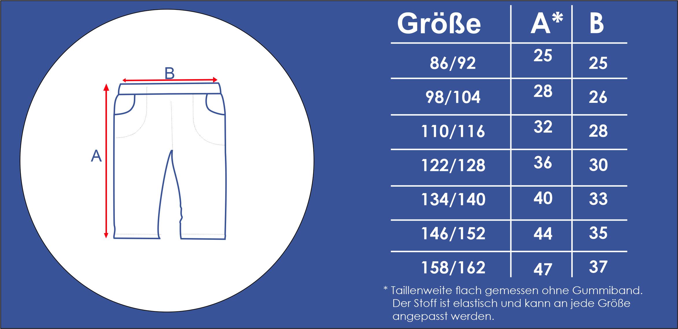 - Gedruckt auf elastischem Sommersweat fertige Musterelemente der Kinderhose mit Seitentaschen (einfach ausschneiden und zusammennähen!)