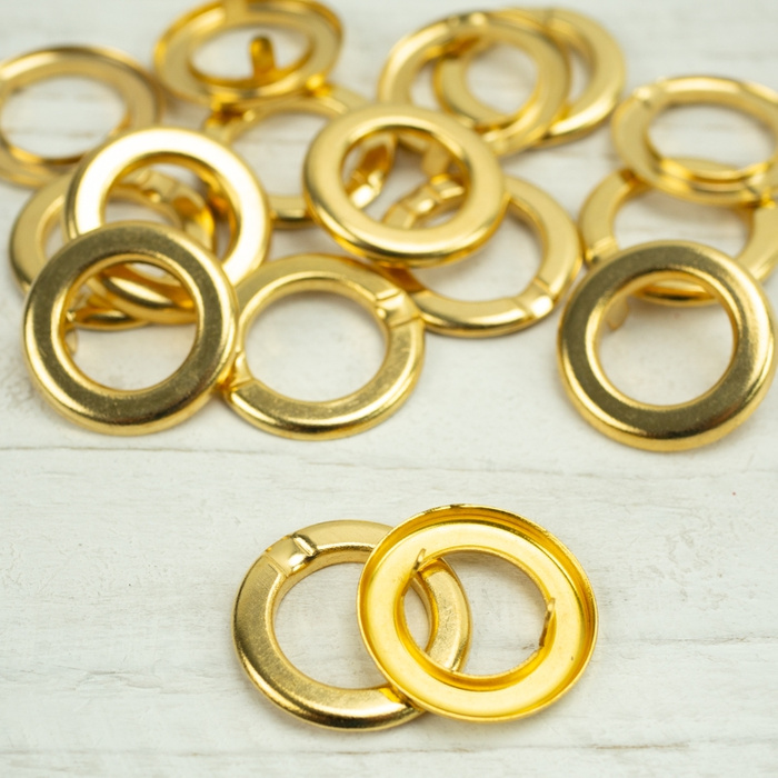 Für die Installation der Ösen ist kein zusätzliches Gerät erforderlich. Es ist notwendig, ein Loch in der Größe des inneren Durchmessers der Öse auszuschneiden und die beiden Teile des Zierbeschlages auf beide Seiten des Loches zu legen und zusammendrücken.