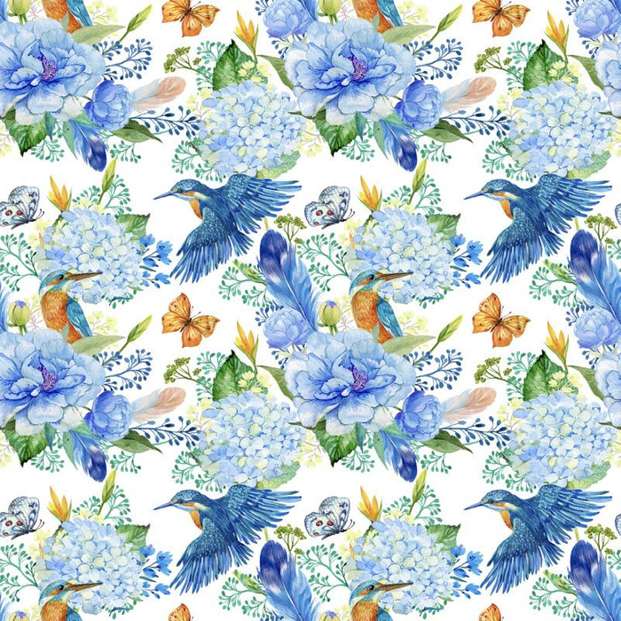 MINI EISVÖGEL UND FLIEDER (EISVÖGEL AUF DER WIESE) / weiß - Baumwoll Musselin
