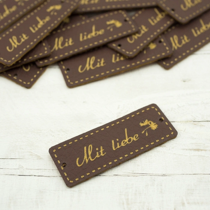 Applikation aus Öko-Leder mit dem Aufschrift "Mit liebe".