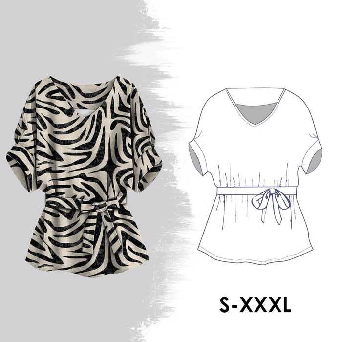 - eine bunte Papierstanze im A0-Format für Kimono blouse in den Größen S bis XXXL