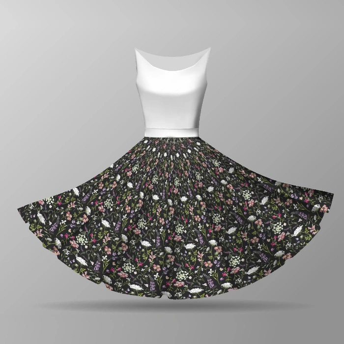 PASTELL BLUMEN / schwarz - Tellerrock-Panel