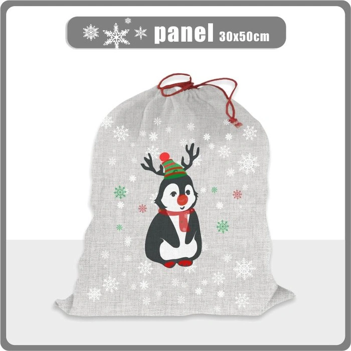 PINGUIN RENTIER / rot - acid wash grau - Baumwoll Webware Panel ( 30 x 50 cm )