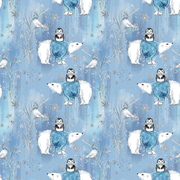PINGUINE AUF BÄREN / hellblau (VERZAUBERTER WINTER) - Baumwoll Webware