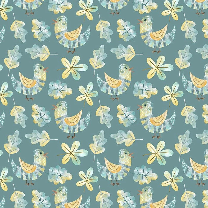 VÖGELCHEN UND BLÄTTER (WALDTIERE) - bio single jerset mit Elastan Sommersweat