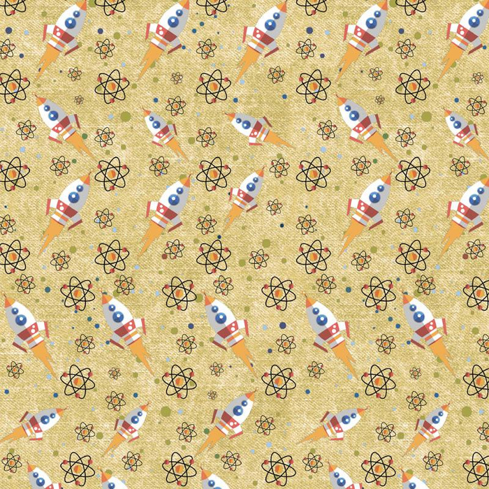 Nähstoff mit dem RAKETEN (WELTRAUMEXPEDITION) / ACID WASH Gold Motiv