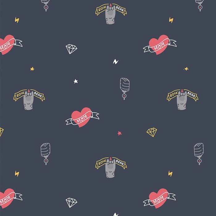 Nähstoff mit dem Rock N Roll heart / navy (gelb)