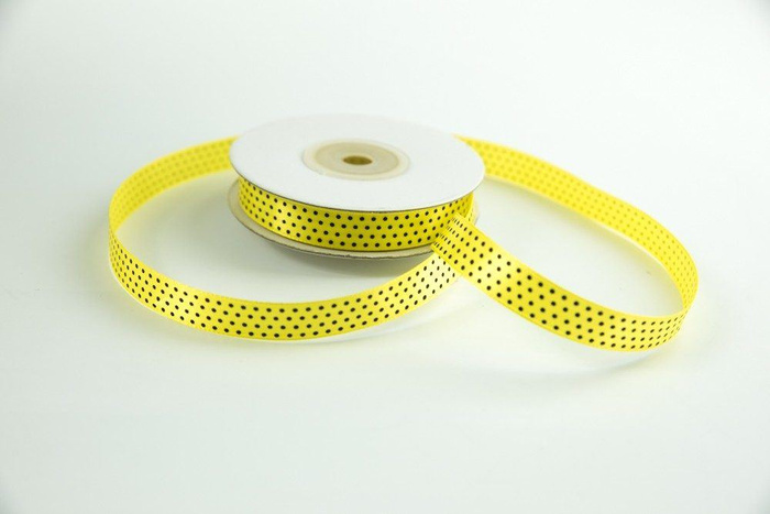 Satinband bedruckt mit Tupfen ist einseitig. Das Band ist fest, nicht elastisch.