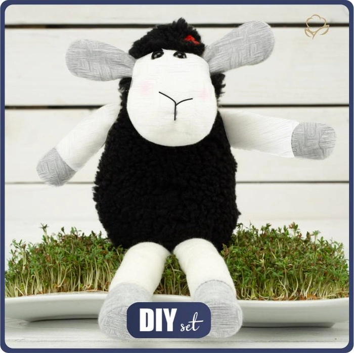 Im Set finden Sie alle notwendigen Produkte zum Nähen eines Schaf-Maskottchens. Alle Teile sind in einer Pappschachtel verpackt.