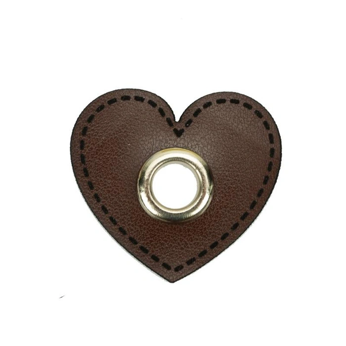 Kunstlederetikett in Form eines Herzens mit Öse.