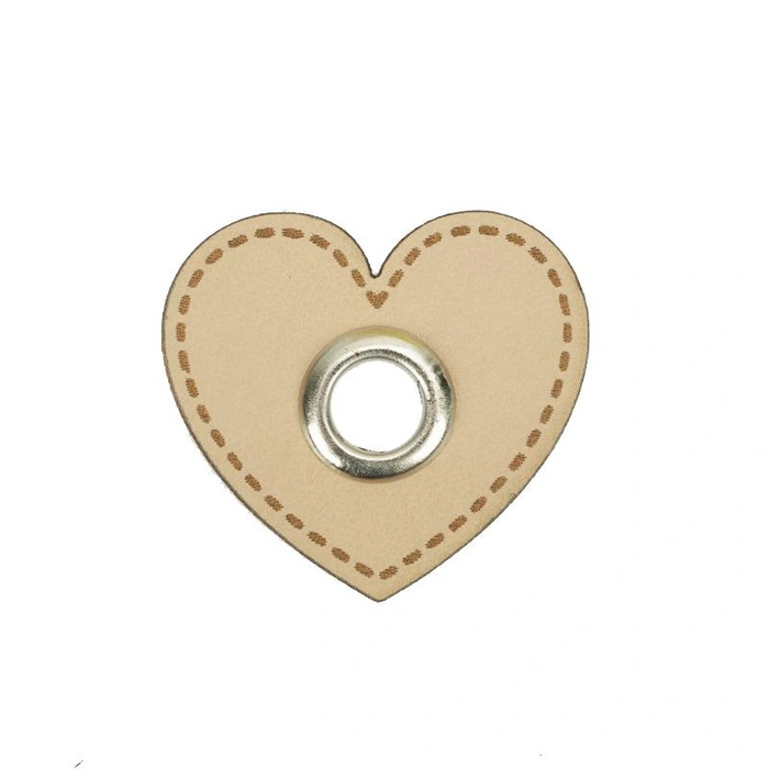 Kunstlederetikett in Form eines Herzens mit Öse.