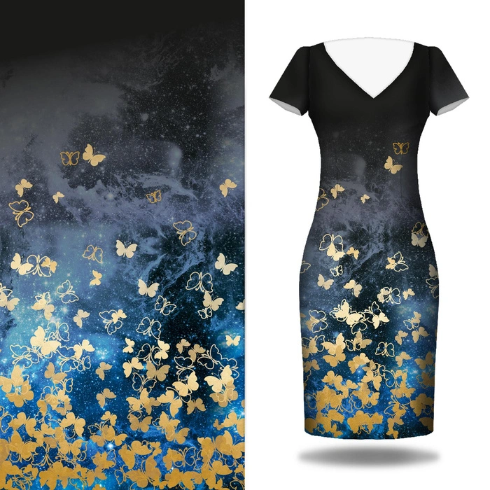 SCHMETTERLINGE / gold - Kleid-Panel krepp