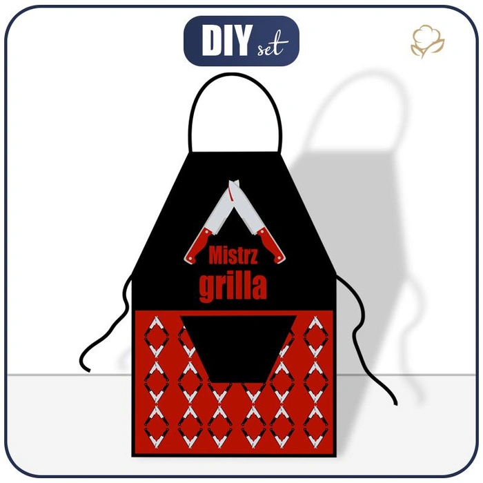 Ein auf wasserfestem Stoff gedrucktes Panel zum Nähen einer Küchenschürze.