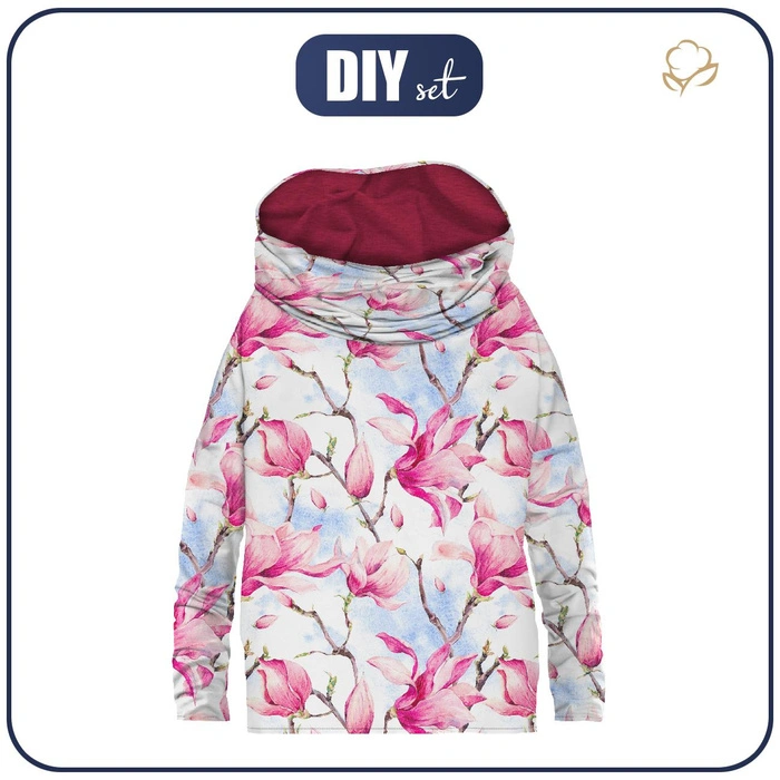 Im Set finden Sie alle notwendigen Produkte zum Nähen eines Damen Sweatshirt mit Schalkragen und Fledermausärmel.