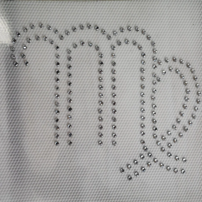 - Wenden Sie den Stoff zusammen mit der Folie und dem Strassmotiv.