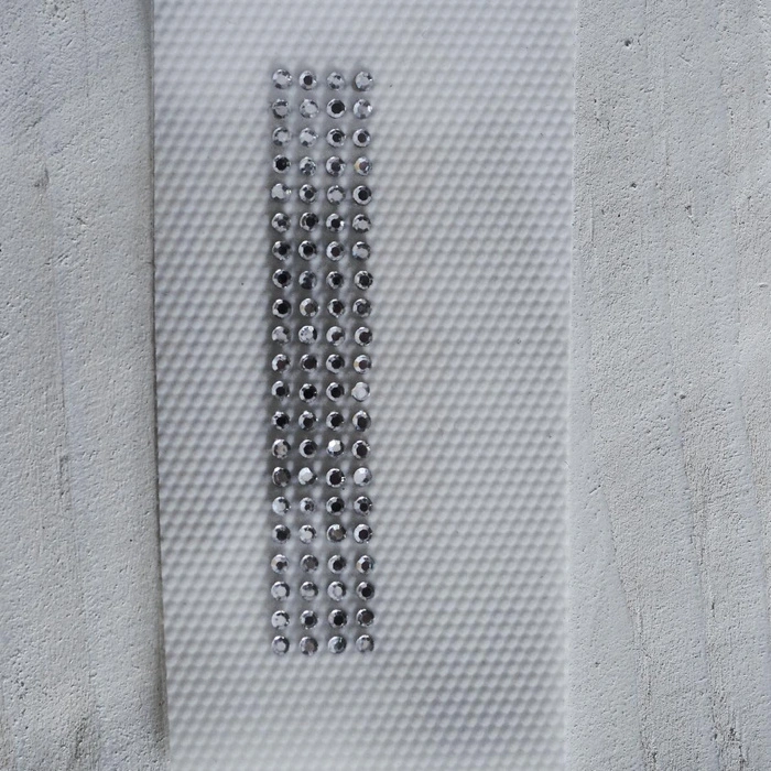 - Drehen Sie den Stoff zusammen mit der Folie und dem Strassmotiv um.