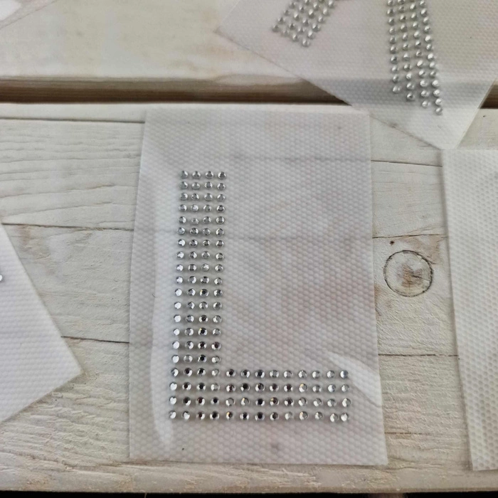 - Drehen Sie den Stoff zusammen mit der Folie und dem Strassmotiv um.