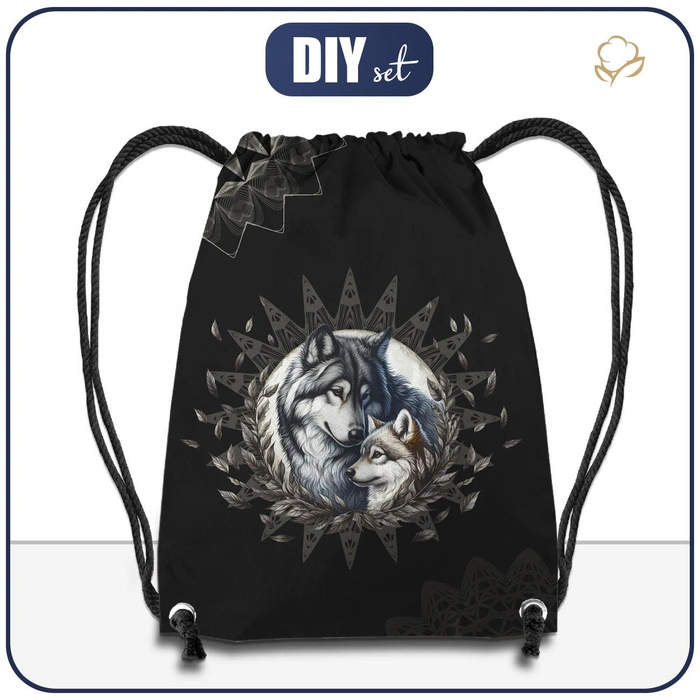 Das DIY-Set enthält die Materialien, die zum Nähen eines Turnbeutels aus einem Panel benötigt werden.