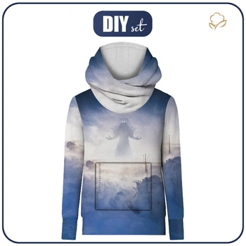 - Auf einen hydrophoben Wintersweat, fertig vorgedruckte Elemente des Unisex Hoodie HYDRA (einfach ausschneiden und zusammennähen)