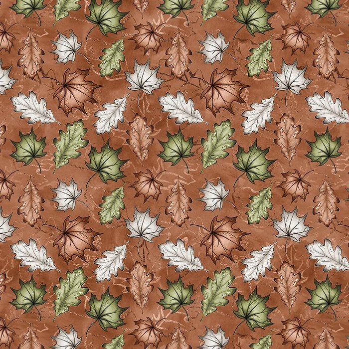 Nähstoff mit dem WALD BLÄTTER ms. 1 / braun
