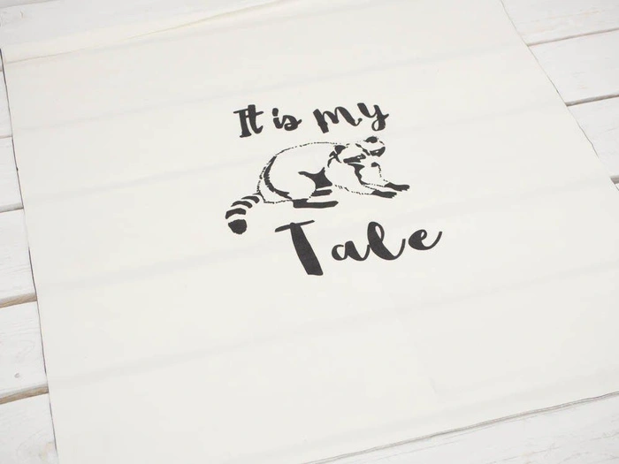 Dzianina pętelkowa z elastanem wzór "Racoon Tale". Produkt w formie panelu.