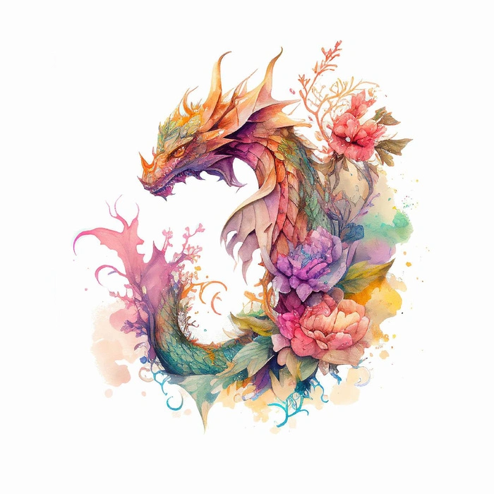 WATERCOLOR DRAGON MS. 2 - Paneel (75cm x 80cm) Thermo lycra