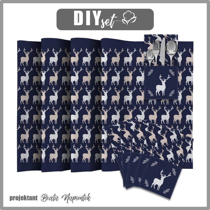 WEIHNACHTSSERVIETTEN UND TISCHLÄUFER - RENTIERE / navy