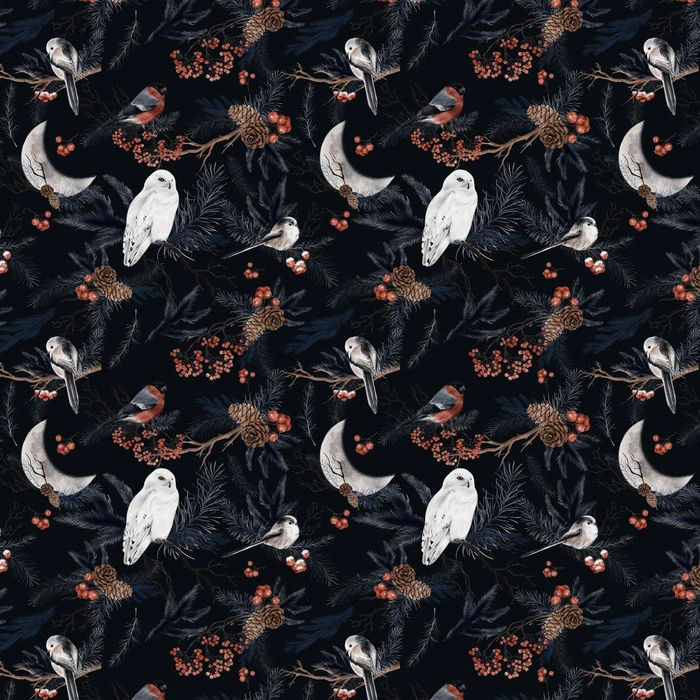 WINTERVÖGEL M. 2 (WINTER IM PARK) - Baumwoll Webware