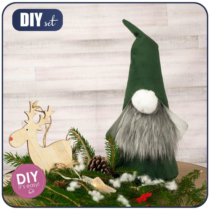 Das DIY Näh-Set enthält die notwendigen Materialien, um einen Wichtel zu nähen. Alle Elemente sind in einem Karton verpackt.